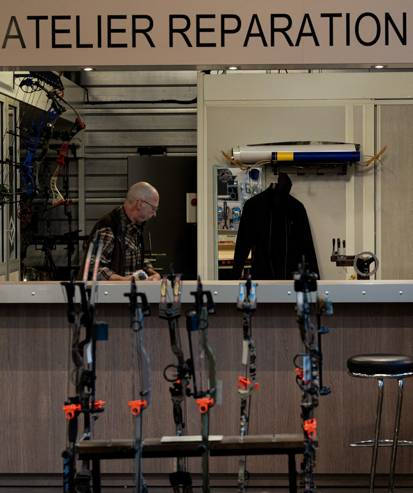 Valentin gère avec professionnalisme l'espace consacré à l'archerie. Arcs, flèches et tubes, accessoires pour les arcs comme pour les archers, cibles ou blasons n'ont aucun secret pour lui.