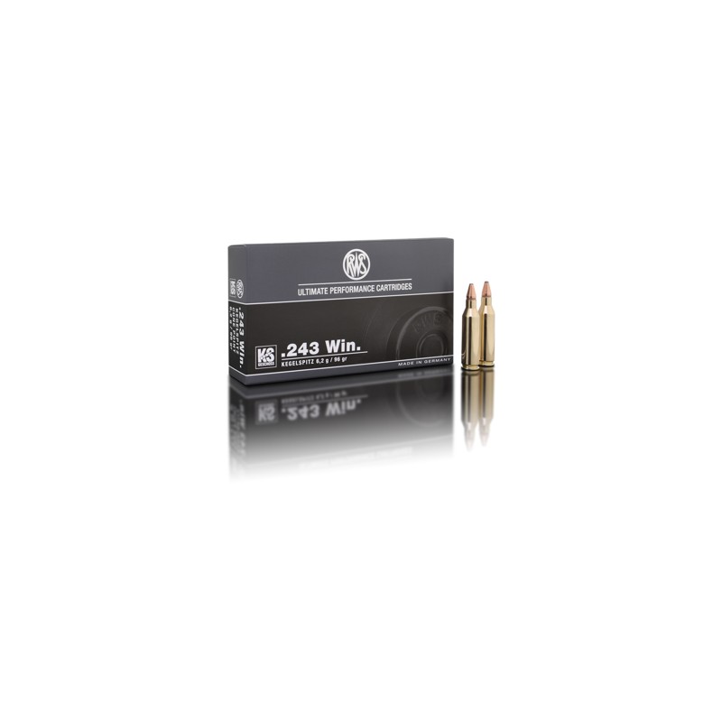 La munition RWS KS 243Win est fabriqué pour la chasse au grand gibier, mais peut s'adapter pour du gibier plus petit. Connus pour la qualité de leurs munitions, RWS nous démontre une nouvelle fois leur savoir faire. La gamme de munitions KS (Kegelspitz) est réputée pour leur précision exceptionnelle et leur faible résistance à l'air. Cela est dù à la forme conique de l'ogive
