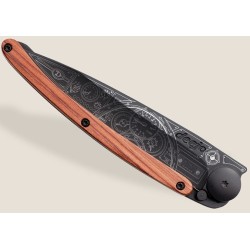 Le Deejo 37g Black en Bois corail avec motif "Tableau de bord d'une voiture" est un couteau de poche léger et personnalisable qui allie fonctionnalité et esthétique.