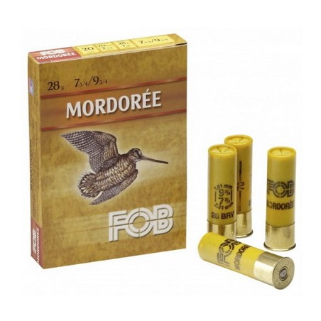 Cartouche FOB MORDOREE CAL.20/70 est une cartouche de chasse Spécial Bécasse en calibre 20/70 . la cartouche FOB MORDOREE CAL.20/70 est la référence dans la catégorie des cartouches « bécasse » en calibre 20. Elle assure une gerbe de plombs généreuse pour les tirs à courte et moyenne distance mais la bourre demi-jupe donne aussi l’efficacité à plus grande distance. Le mélange de plombs est le bon compromis entre le grand nombre d’impacts avec le 9 ¾ et la létalité des plus grosses billes de 7 ¾