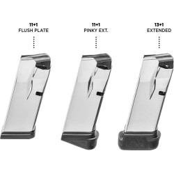 Livré avec une housse SPRINGFIELD et 2 chargeurs de 11coups (avec extension du petit doigt) et 13coups. Une plaque d'encastrement est également incluse pour réduire au maximum l'encombrement du pistolet.